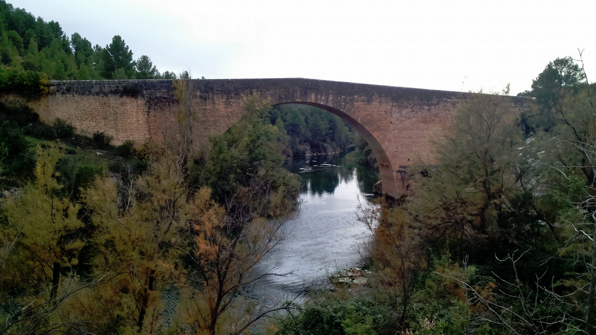 Este majestuoso puente ubicado en el término de Venta del Moro, de orígenes iberorromanos, fue construido por el Concejo de Iniesta hacia el año 1570 para cruzar el caudaloso Río Cabriel, separaba las extensas tierras castellanas de Requena e Iniesta, actualmente divide las comunidades de Valencia y Castilla .